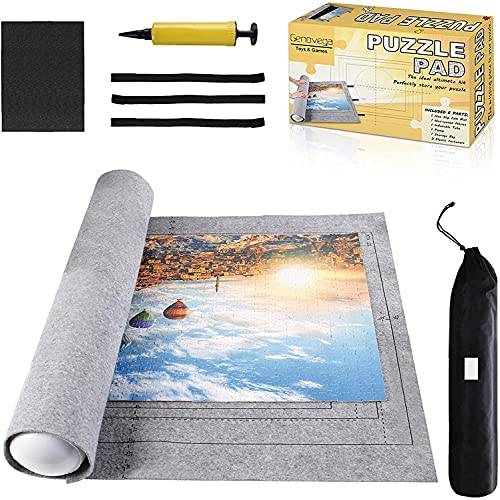 Ob Ravensburger- oder Clementoni-Puzzlerolle: Beim Puzzlerollen-Vergleich sollten Sie darauf achten, dass diese auch die passende Größe für Ihr gewünschtes Puzzle aufweist. Falls Sie besonders große Puzzles mit mehr als 1.000 Teilen machen, achten Sie darauf, dass die Rolle dafür auch ausgelegt ist. Rollbare Puzzlerollen haben meist eine aufblasbare oder steckbare Rolle dabei, die bei Bedarf aufgebaut werden kann, damit das Puzzle mitsamt dem Filz darum gewickelt werden kann.