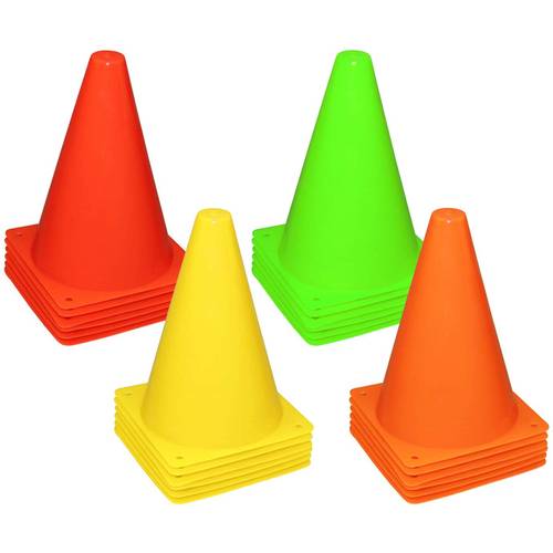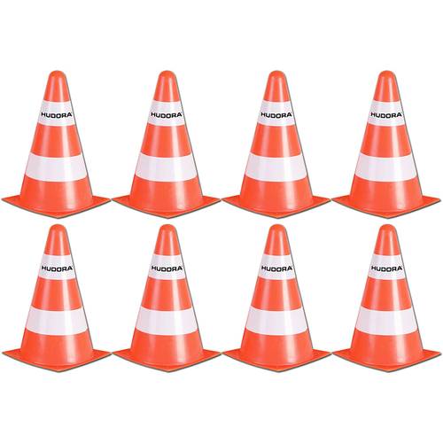 Praktisch: Einige Hersteller bieten faltbare Pylonen aus besonders dünnem Kunststoffmaterial an. Diese Modelle lassen sich auf wenige Zentimeter Höhe zusammenfalten und können daher platzsparend im Kofferraum transportiert werden.