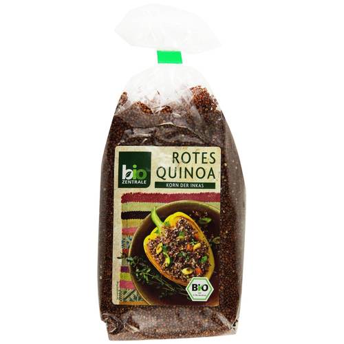 Rote Quinoa | Die rote Quinoa, die pro 100 g ca. 402 kcal besitzt, ist definitiv ein Hingucker auf dem Teller, aber leider verliert sich das satte rot beim Kochen und erscheint nach der Zubereitung etwas bräunlicher. Geschmacklich ist die rote Variante ein bisschen kräftiger und erdiger als die weiße Quinoa. Die Zubereitungszeit ist etwas höher und liegt bei ungefähr 20 Minuten. Zudem ist dieser Typ etwas formstabiler und nahezu knusprig und eignet sich daher für Quinoa Bratlinge und ähnliche Quinoa Rezepte. | |
