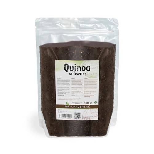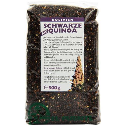 Schwarze Quinoa | Die schwarze Quinoa ist ein Hybrid. Dieser wurde aus Baumspinat und den Quinoa Samen gekreuzt. Die schwarze Farbe hebt sich besonders optisch sehr gut von anderen Lebensmitteln ab und wird daher auch gern in einem Quinoa Salat verwendet. In puncto Konsistenz ist diese Art relativ knusprig und hat eine leichte, süßliche Note. Die festere Struktur erhöht auch die Kochzeit, die bei ca. 15 bis 20 Minuten liegt. Auf 100 g hat die schwarze Quinoa ca. 422 kcal. | |