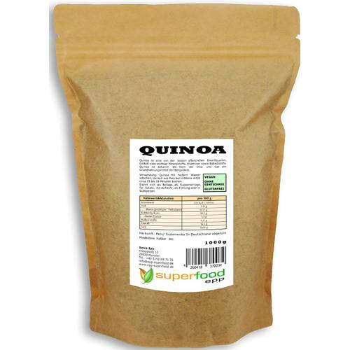 » Mehr InformationenTendenziell ist eine Überversorgung mit Quinoa auszuschließen. Bei dem Produkt handelt es sich um ein Lebensmittel und nicht um ein Nahrungsergänzungsmittel wie Kieselerde. Wenn Sie auf eine ausgewogene und abwechslungsreiche Ernährung setzen, dann besteht im Regelfall keine Möglichkeit, Quinoa überzudosieren.