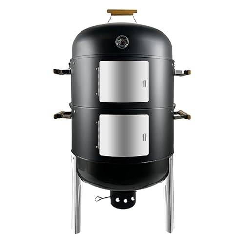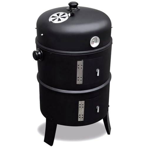Wie wir in verschiedenen Räuchertonnen-Tests lesen, weisen die meisten Räuchertonnen eine Höhe von 80 bis 140 cm und einen Durchmesser von 30 bis 50 cm auf. Die Kapazität hängt außerdem von der Anzahl der Grillroste und Haken ab, die zum jeweiligen Modell gehören.