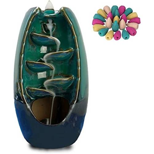 Die zumeist mitgelieferten Rückfluss-Räucherkerzen leiten den Rauch nach unten und sind speziell für die Verwendung mit den Rückfluss-Räucherbrennern vorgesehen. Der Effekt, welcher einem Wasserfall stark ähnelt, kommt durch den Hohlraum im Inneren des Räucherkegels zustande. Falls das Modell etwas anders funktioniert, wird dies in der mitgelieferten Räucherwasserfall-Anleitung erläutert.