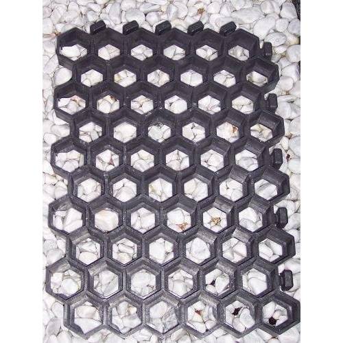 Ein Rasengitter mit Wabenstruktur trägt dazu bei, dass sich der Druck auf das Rasengitter, beispielsweise durch ein Auto, gleichmäßig verteilt.