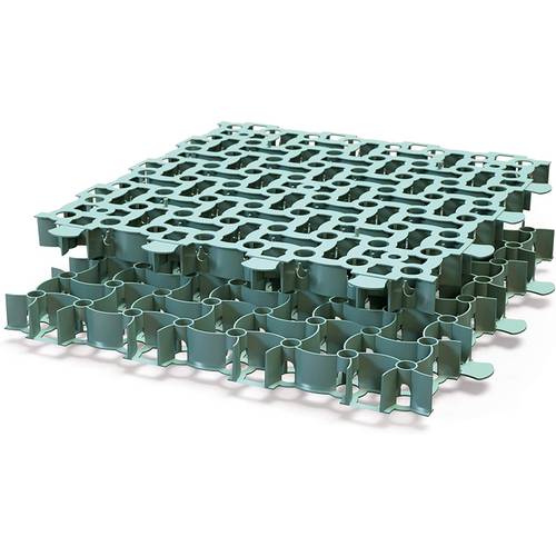 Kunststoff-Rasengitter werden per Stecksystem miteinander verbunden.