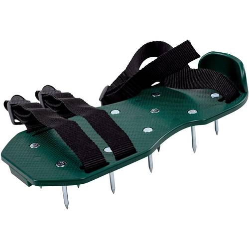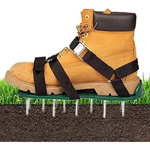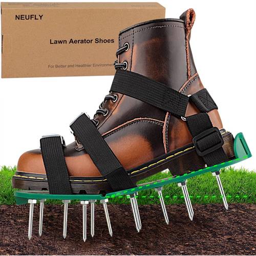 Rasenlüfter-Schuhe sind im eigentlichen Sinn Sohlen, die sich mithilfe von drei bis vier Bändern an den eigenen Schuhen befestigen lassen. An der Unterseite der Sohlen sind bis zu 26 Nägel befestigt. Diese Nägel gelangen beim Ablaufen des Rasens mehrere Zentimeter in den Boden. So wird der Boden belüftet, was einem gesunden und vollen Rasen zuträglich ist und zugleich Sauerstoff in die unteren Schichten des Rasens befördert. Deshalb werden Rasenschuhe für den Garten auch Aerifizierer genannt.