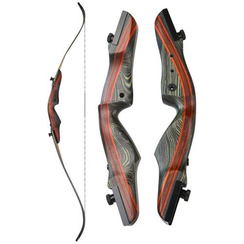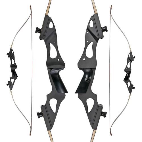 Das Griffstück moderner Recurvebögen ist ergonomisch geformt, bietet Befestigungspunkte für Visiere und weiteres. Die Wurfarme sind oft wechselbar.