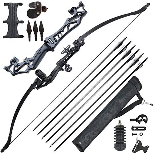 In einer solchen Situation kann es mehr Sinn ergeben, ein Bogen-Set zu kaufen. Mit einer Handvoll Pfeilen, einem Fingerschutz, Armschutz und Rückenköcher wird meist das übliche Zubehör abgedeckt. So können Sie nach einer geringen Anfangsinvestition fundierter entscheiden, welches Zubehör gewechselt werden soll. Hinzu kommt, dass der Erwerb im Set meistens günstiger ist. Dieser Recurvebogen-Vergleich untersucht sowohl einzelne Bögen, als auch Bogen-Sets.