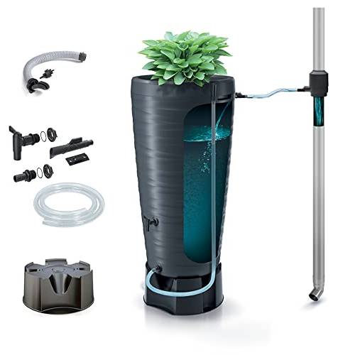 Hierfür benötigen Sie einen Regenwassertank mit Auslaufhahn und Sockel. Der Auslaufhahn fungiert ähnlich wie ein Zapfhahn, den Sie entweder direkt mit dem Gartenschlauch verbinden können oder mit dem Sie die Gießkanne befüllen können.