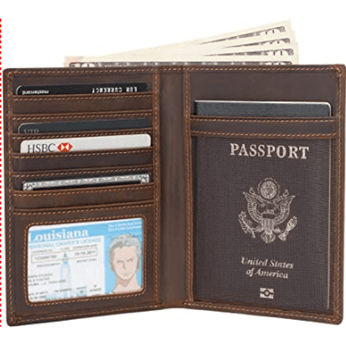 Während diese Reisepasshülle sehr kompakt ist, gibt es auch Passschutze mit vielen Fächer, Handschlaufe und anderen Extras.