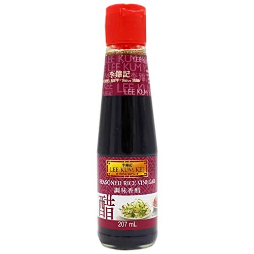 Hier hatten wir beispielsweise den Reisessig von Lee Kum Kee vorliegen. Wir finden, dass er durch seine intensive, dunkle Farbe hervorsticht.