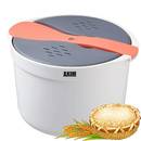 Tipp: In der Regel ist es sinnvoll, den Reis nach dem Kochen für ein bis zwei Minuten ruhen zu lassen. In dieser Zeit können Sie den Reiskocher in der Mikrowelle stehen lassen, damit dieser auch außen etwas abkühlt. Dennoch empfehlen wir Ihnen die Verwendung von Ofenhandschuhen.