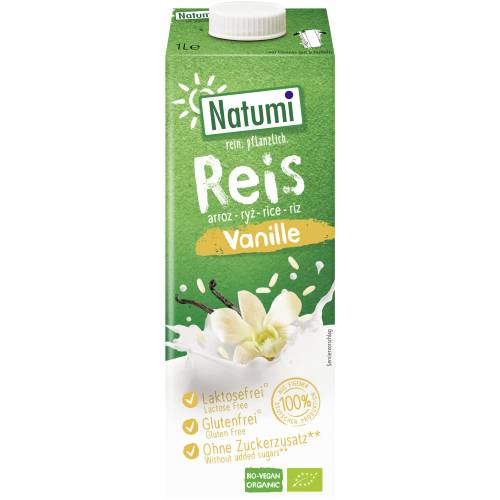 Platz 1 | Natumi Reis Vanille | ca. 9 € | 51 kcal | ![]() ![]() | ||