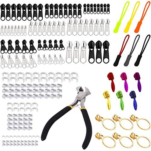 Dazu gehören in der Regel obere und untere Stopper. Das Reparaturset enthält auch Reißverschluss-Schieber. Zudem besitzen viele Sets doppelte Reißverschlüsse.