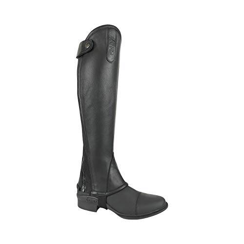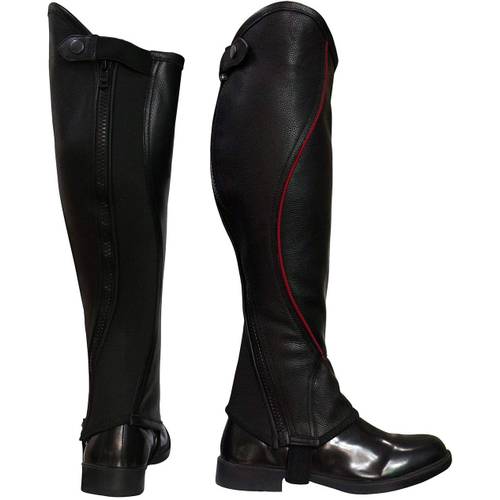 Chaps haben einen Reißverschluss, der wahlweise vorn oder an der Seite verläuft, und werden oben mit einem Druckknopf oder einem Klettverschluss geschlossen. Diese Chaps bieten einen guten Kontakt zum Pferdekörper, sodass man treibende Hilfen ebenso sanft wie effektiv geben kann. Gleichzeitig sind sie bequem zu tragen und pflegeleicht.
