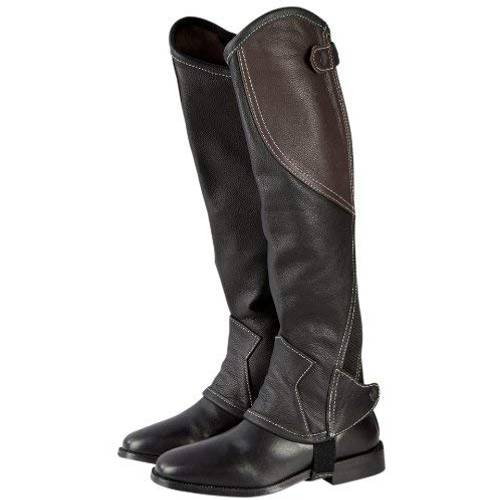 Reitchaps sind Beingamaschen, die Sie über der Reithose tragen. Sie sind meist aus Leder und verfügen über ein Gummiband, das Sie unter die Schuhsohle klemmen. Das sorgt für einen guten Halt.