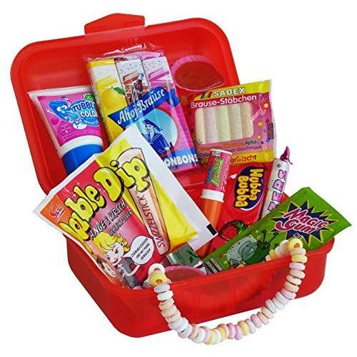 Die Auswahl an Nostalgie-Süßigkeiten-Boxen ist nach wie vor groß. Neben den süßen Knabberhalsketten, Kirsch- oder Herzlollies sind auch Chuppa-Chups-Lollies, Hubba-Bubba- oder Center-Shock-Kaugummis oder andere Kaubonbon-Sorten sehr beliebt, wie Tests von Retro-Süßigkeiten im Internet gezeigt haben.