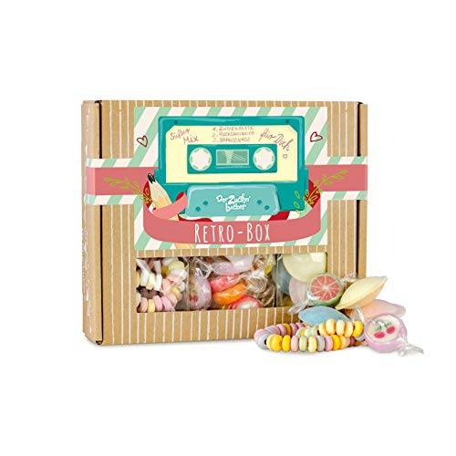 Möchten Sie eine Retro-Süßigkeiten-Tüte verschenken, achten Sie auf die Optik. Viele Geschenkboxen kommen mit einem nostalgischen Aussehen daher und wecken dadurch zusätzliche Kindheitserinnerungen, wenn Sie diese beispielsweise verschenken möchten.