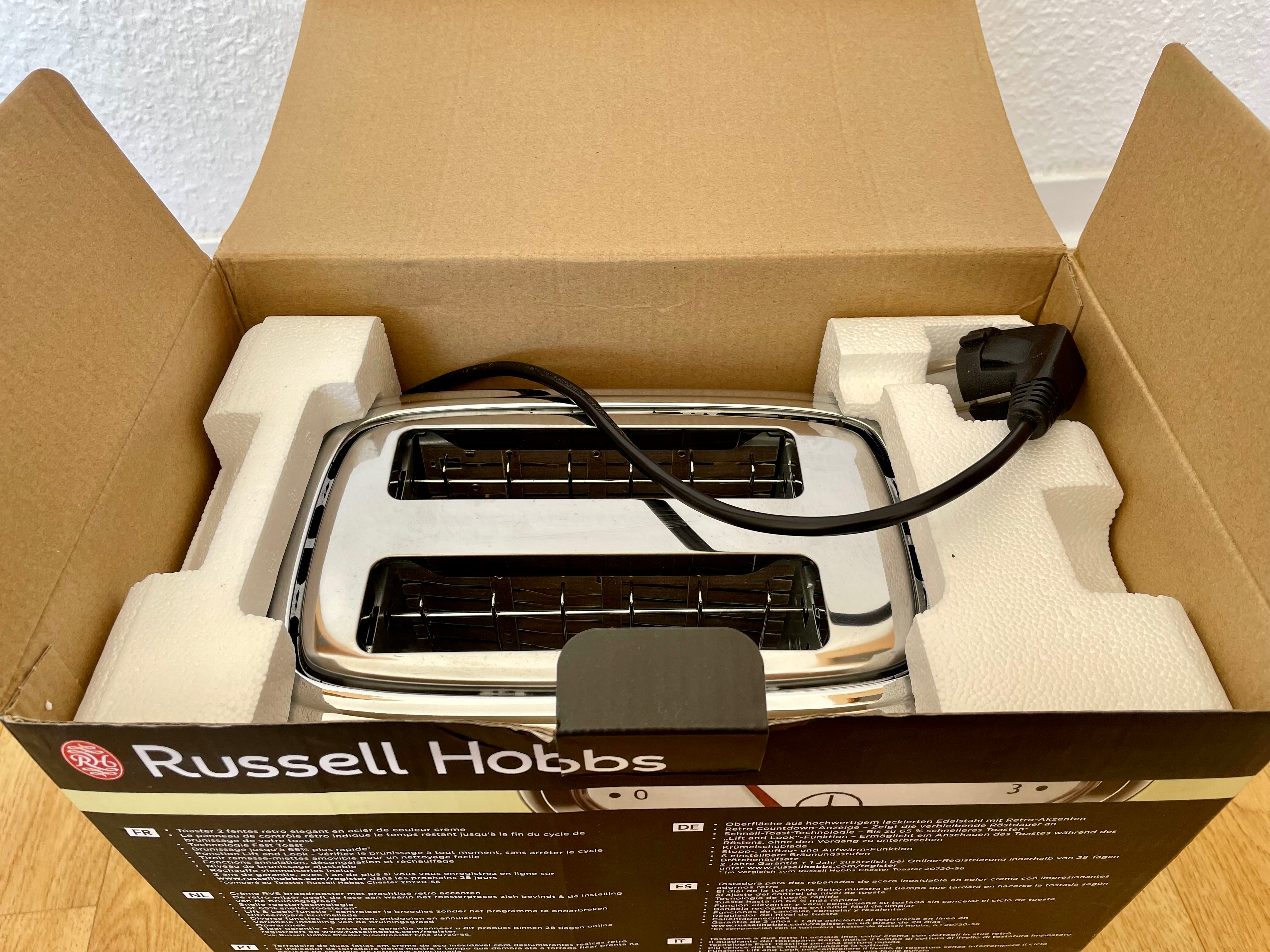 Hier hatten wir z. B. den Retro-Toaster von Russell Hobbs vorliegen. Wir empfinden das Design des Produkts als besonders ansprechend.