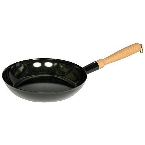 Hier sehen wir eine Riess-Pfanne mit schwarzer Emaille-Innenbeschichtung. Sie eignet sich unter anderem zum scharfen Anbraten bei mittlerer bis hoher Temperatur.