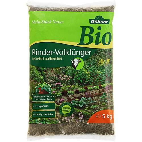 Rinder-Volldünger eignet sich für alle Pflanzenkulturen. Da es sich um einen Naturdünger handelt, versorgt Rinderdung-Dünger nicht nur die Pflanzen mit Nährstoffen, sondern verbessert auch die Bodenbeschaffenheit nachhaltig. Denn durch die Kompostierung enthält dieser viel Humus.
