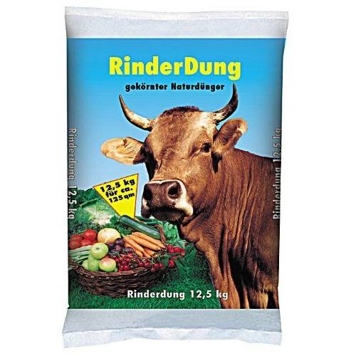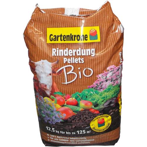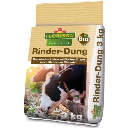 Rinderdung ist ein Naturdünger und wird aus getrocknetem Rindermist hergestellt. Die meisten Hersteller pressen den getrockneten Rinderdung zu Pellets und sprechen von gekörntem Rinderdung. Das ermöglicht eine einfachere Weiterverarbeitung.