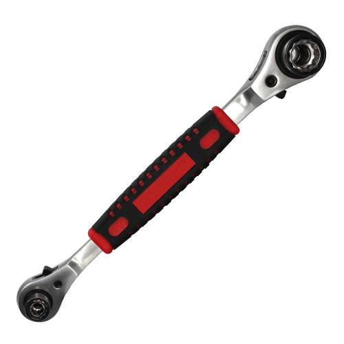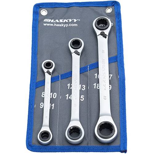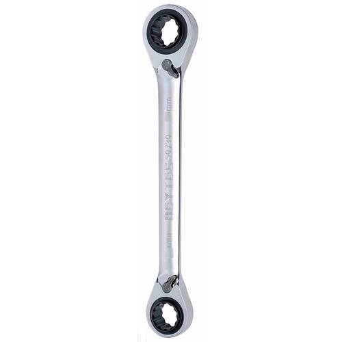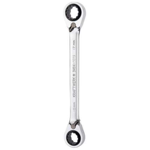 Der Vorteil eines Doppelringschlüssels mit Ratsche und zusätzlichem Gelenk ist besonders für schwer zugängliche Arbeitsbereiche geeignet. Dieses Modell findet seine Liebhaber unter den Autoschraubern, da sie mit dieser Art Ratschenringschlüssel ideal an versteckte Schraubverbindungen im Inneren des Motors gelangen.