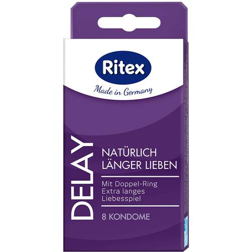 Wollen Sie als Träger Ihren eigenen Höhepunkt hinauszögern, bieten sich die eher dickwandigen und mit Kontur-Ringen unterhalb der Eichel versehenen Delay-Kondome von Ritex an.