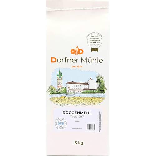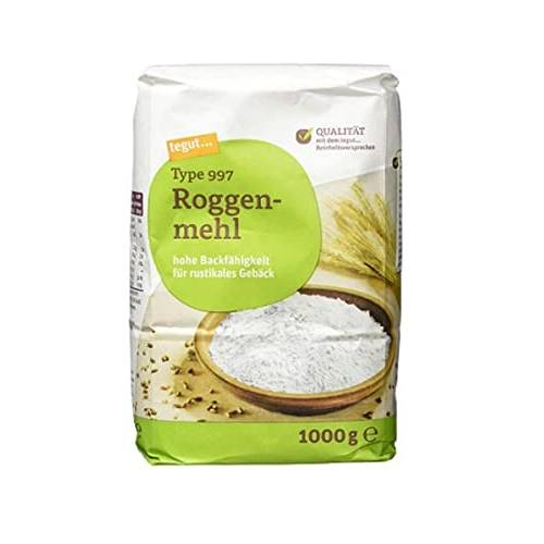 Hier sehen wir Dennree-Roggenmehl der Type 997, wobei Dennree eine Bio-Handelsmarke ist.