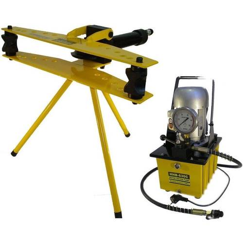 Beim zweiten Typ, welcher von Profis am häufigsten verwendet wird, handelt es sich um die schon erwähnte Rohrbiegemaschine hydraulischer Art. Im Gegensatz zum manuellen Werkzeug kann diese Maschine per Hand mit einem weitaus geringeren Kraftaufwand betätigt werden. Die integrierte Hydraulik sorgt dabei für einen wohldosierten Druck auf das Rohr, ohne es dabei zu beschädigen.