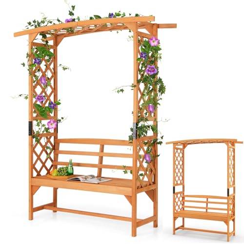 Platz 1 | Costway Rosenbogen mit Bank | ca. 135 € | sehr standfest | leicht gerundeter Bogen | ![]() ![]() | |