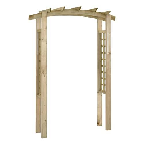 Rosenbögen aus Kiefernholz sind weit verbreitet, weil das Holz preiswert ist und sich gut verarbeiten lässt. Kiefer hat eine helle, warme Farbe und eine gleichmäßige Maserung. Weil es ein eher weiches Holz ist, benötigt es im Außenbereich eine Schutzbehandlung wie eine Imprägnierung oder Lackierung. Ohne ausreichenden Schutz ist ein Rosenbogen aus Kiefer anfällig für Feuchtigkeit und Schädlinge.
