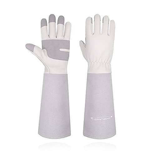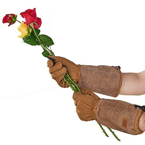 Verschiedene Rosenhandschuhe-Tests im Internet haben gezeigt, dass sich Rosen-Gartenhandschuhe hervorragend für das Schneiden von Stachelpflanzen wie Rosen, Himbeeren, Tannen, Kakteen oder Brombeeren eignen. Dank der langen Ärmelmanschette, die teilweise bis zum Ellenbogen reicht, schützen lange Rosenhandschuhe nicht nur die Hände vor Kratzern, sondern gleich den ganzen Unterarm. Das Material der besten Rosenhandschuhe besteht in der Regel aus Leder und ist sehr robust und widerstandsfähig, weshalb Gartenhandschuhe für Rosen dornenfest sind.
