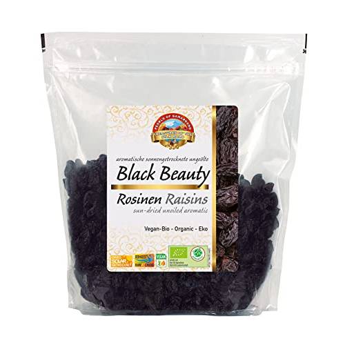 Die schwarzen Bio-Rosinen "Black Beauty" von Pearls of Samarkand, die aus Usbekistan stammen, überzeugen uns durch ihre natürliche Süße und sonnengetrocknete Qualität. Diese Rosinen, die ohne Zucker, Öle oder Konservierungsstoffe verarbeitet werden, sind eine sehr gute Quelle für Antioxidantien und bieten eine hohe Nährstoffdichte. Anders als die schwarzen Jumbo-Rosinen von Sivifood aus unserem Vergleich, die ebenfalls ungeschwefelt und ungezuckert sind, zeichnen sich die Black Beauty Rosinen durch ihre besondere Größe und ihr intensives Aroma aus. Ihre Fairtrade-Zertifizierung und biologische Herkunft unterstreichen das Engagement für nachhaltige und ethische Produktionsmethoden. Dieses Produkt ist ein idealer, gesunder Snack für Ernährungsbewusste.