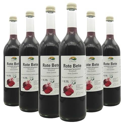 Für gewöhnlich ist Rote-Bete-Saft unvergoren, das bedeutet, die erntefrischen roten Rüben werden ausgepresst und der Saft direkt abgefüllt. Es gibt aber auch ein paar wenige Hersteller, die vergorenen Rote-Bete-Saft anbieten. Dabei wird der ausgepresste Saft durch Milchsäurebakterien vergoren. Das ist eine Art der Fermentation, um Lebensmittel haltbar zu machen.
