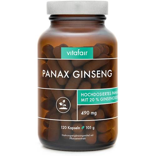 Platz 5 | Vitalplant Panax Ginseng | ca. 29 € | Hydroxypropylmethylcellulose | 40 Tage | ![]() ![]() |