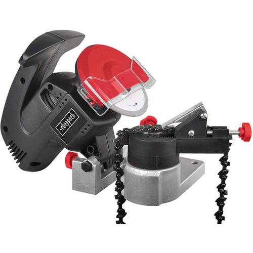 - Die beiden wichtigsten Bestandteile eines Sägekettenschärfgeräts sind die Schleifscheibe und die Spannvorrichtung. Diese sorgen dafür, dass Sie gleichmäßig alle Schneidezähne Ihrer Sägekette gleichmäßig schärfen. So gut wie alle Hersteller geben mindestens eine passende Schleifscheibe dem Gerät mit.