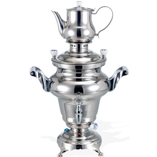 Ein Samowar aus Edelstahl ist besonders robust und lässt sich leicht reinigen.