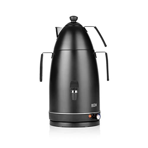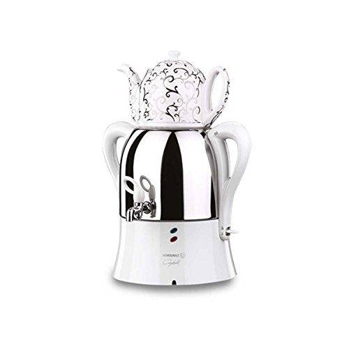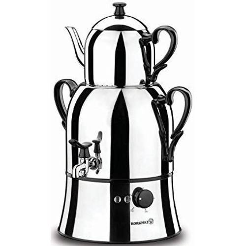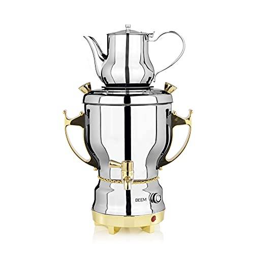 Sehr hochwertige Modelle, wie beispielsweise Beem Samoware, bestehen meist vollständig aus (verchromtem) Edelstahl. Alternativ können Sie in diesem Preissegment auch einen Messing-Samowar bekommen. Lediglich die Griffe am Wasserspender und am Teekannendeckel können aus Porzellan oder Kunststoff bestehen, um Verletzungen an der heißen Oberfläche der Behälter zu vermeiden. Generell ist ein Samowar aus Edelstahl wesentlich robuster und bruchsicherer als ein Modell aus Kunststoff: Die Geräte sind langlebiger und lassen sich oftmals leichter reinigen. Allerdings besteht auch eine erhöhte Verletzungsgefahr durch die heiße Metalloberfläche.