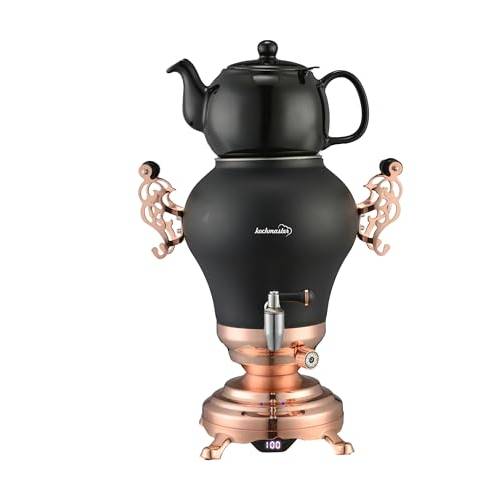 Konsumieren Sie hingegen weniger Tee, eignet sich ein Samowar mit integriertem Wasserkocher eher für Ihre Ansprüche. Bei einem kleinen Samowar kann die Teekanne meist zwischen 0,5 und 0,7 Liter Sawarka fassen. Die maximale Füllmenge des Wasserbehälters entspricht mit maximal 2 Liter Volumen etwa dem eines herkömmlichen Wasserkochers. Aber keine Bange: 2 Liter sind vollkommen ausreichend, wenn Sie zwei bis drei Gäste zugleich mit russischem oder türkischem Tee versorgen wollen.