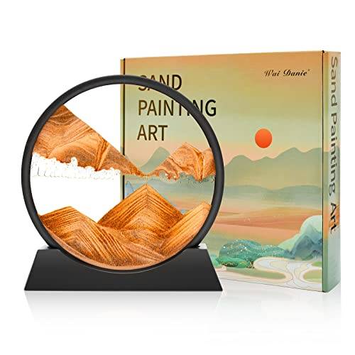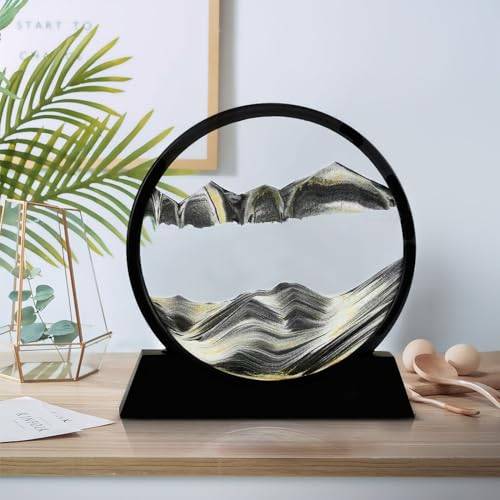 Hochwertige Sandbilder enthalten feinen Natursand in unterschiedlichen Farben und bilden aufgrund der Fließkraft zwischen den beiden Glaswänden atemberaubende Muster, Landschaften und Naturschauspiele, wie zum Beispiel einen Sonnenuntergang, Wolken und Flüsse.