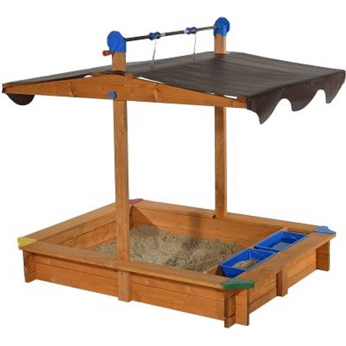 Bei einem Sandkasten aus Holz mit Dach finden Sie häufig noch die angegebene Höhe, die jedoch in den seltensten Fällen von Bedeutung für die Aufstellmöglichkeiten sein dürfte.