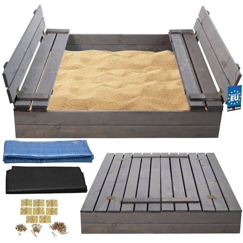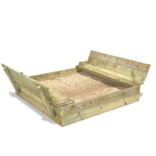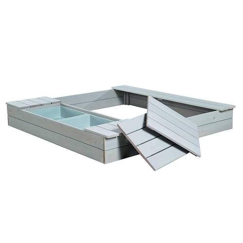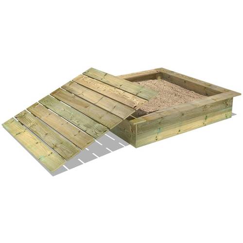 Bevorzugen Sie einen Sandkasten aus Holz mit Abdeckung, um das Holz zusätzlich zu schützen. Bei einem Sandkasten aus Holz mit Deckel ist dieser sogar teils bereits integriert und besteht aus den umgeklappten Sitzbänken.