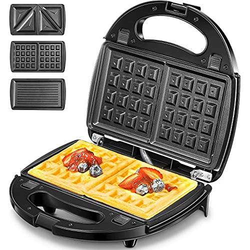 Ein Sandwichmaker mit Wechselplatten eignet sich für Personen, die schnell kleine Snacks zubereiten wollen. Haben Sie nicht viel Platz in Ihrer Küche, dann wollen Sie einen 3-in-1-Sandwichmaker nicht missen, denn er vereint gleich drei Küchengeräte in einem und ist daher besonders platzsparend. Sie können mit diesem Gerät knackiges Gemüse grillen und direkt danach die Platten austauschen und leckere Waffeln als Nachspeise zubereiten.