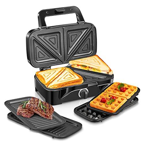 Der 3-in-1-Sandwichmaker hat herausnehmbare Platten, die je nach Modell auch in der Spülmaschine gereinigt werden können. Die meisten Hersteller empfehlen allerdings eine Reinigung mit der Hand, da die Beschichtung der Platten sensibel ist und in der Spülmaschine zerkratzt oder beschädigt werden könnte. Bitte beachten Sie, dass Sie die wechselbaren Platten niemals mit einem Stahlschwamm reinigen sollten.