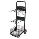 Der übliche Wagen besteht aus einem Gestell mit drei bis vier Rädern. Größtenteils handelt es sich dabei um zwei größere Räder an der hinteren Achse sowie eine oder zwei Lenkrollen an der vorderen Achse. Wenn Sie den Sattelwagen für Westernsättel nutzen möchten, empfiehlt sich aufgrund des hohen Gewichts des Sattels eher ein Sattelwagen mit Lenkrollen.