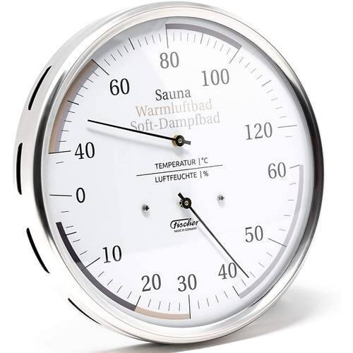 Dasselbe gilt übrigens in umgekehrter Form auch für das Hygrometer. Hier hören die Messskalen gelegentlich schon bei 60% Luftfeuchtigkeit auf. Traditionelle Saunagänge setzen nämlich auf eine niedrige Luftfeuchtigkeit zwischen 5 und 15% oder – je nach Saunaform – auch mal 40%. Bei hoher Luftfeuchtigkeit würde man dann nicht mehr von Sauna sprechen, sondern von einem Dampfbad.