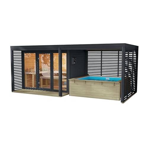 Für die Außenverkleidung der Sauna wird in der Regel dieselbe Holzart genutzt, die auch im Innenraum verlegt wurde. Neben der Holzverkleidung gehören auch eine Tür und eine kleine oder große Glasfront zum gelieferten Selbstbau-Satz.
