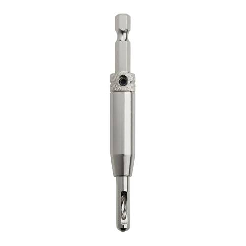 Wie wir wissen, ist beim Umgang mit einem Scharnierbohrer immer auch die Länge der Zentrierspitze zu beachten – bei diesem kwb-Scharnierbohrer sind es 3 mm, damit sie nicht versehentlich das Furnier oder die Beschichtung auf der Vorderseite durchbohrt.