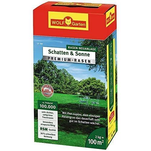 Modell | Wolf-Garten Schatten & Sonne LP50 | Natureflow Highspeed Nachsaat Rasensamen | Wolf-Garten L-RS 100 | Turbogrün Schattenrasen | Veddelholzer Rasensamen | |||
